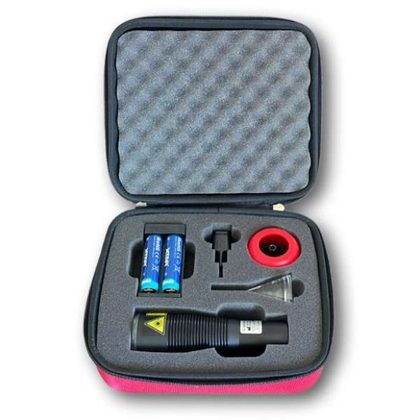 Conținutul pachetului: dispozitiv SL 1800, 2 acumulatori, încărcător, fibră optică, aplicator nazal, inel cauciuc, casetă roșie.